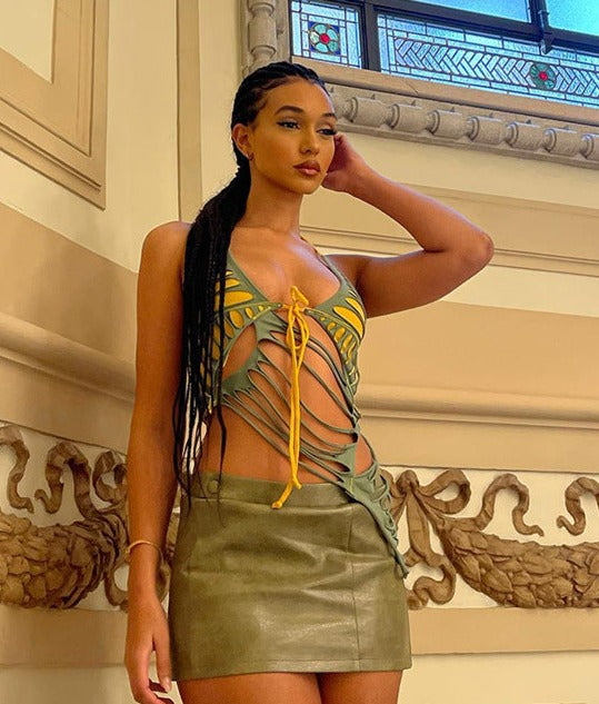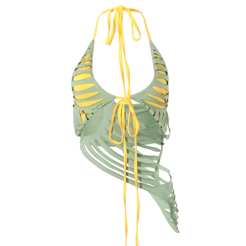 This versatile backless halterneck strap top is a wardrobe essential. Featuring a slim fit and flattering burnt color. it will make a statement in any outfit. Perfect for day or night. it's a stylish must-have.