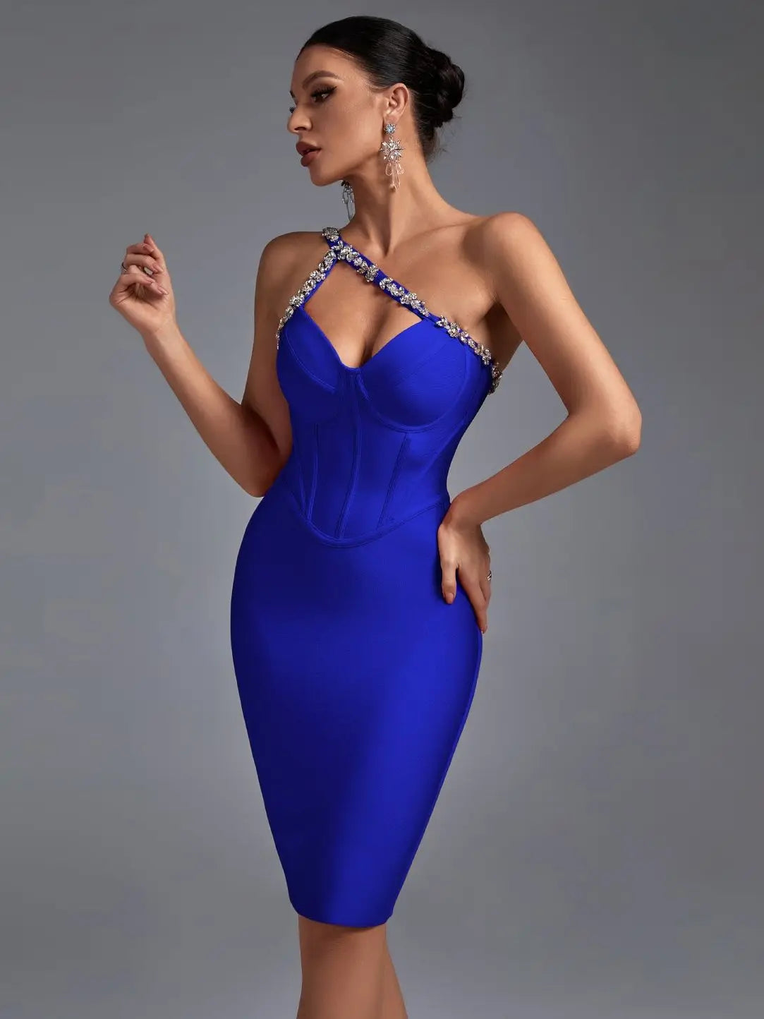 Vvhou - Crystal Red Halter Neck Midi Evening Party Bodycon Dress